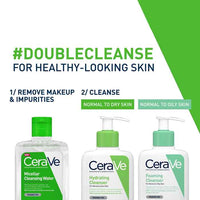 CeraVe Hydrating Micellar Water is a gentle, no-rinse cleanser designed to lift away makeup, dirt and impurities while supporting the skin’s natural protective barrier. This soothing formula refreshes the skin without stripping moisture, leaving it feeling clean, balanced plus comfortable.